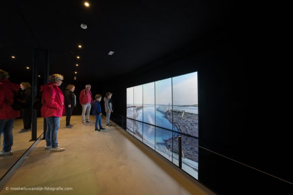 Een introductiefilm neemt je mee door de geschiedenis van het Wad. In deze film zijn prachtige natuuropnames te zien, gecombineerd met animaties. Na het kijken van de film kunnen bezoekers voor verdieping terecht in de collectiekasten met tal van touchscreens. Een doorlopende timelapse-film, verdeeld over een breed beeld bestaande uit 5 schermen, toont het wad in een cyclus van eb en vloed. In een digitaal vloerspel kun je, stampend op het water, eilandjes laten ontstaan met gras en schaapjes.