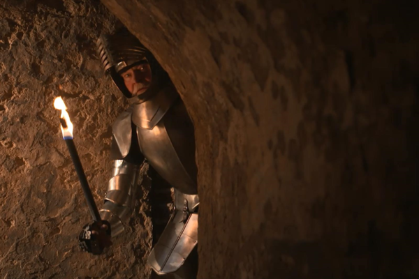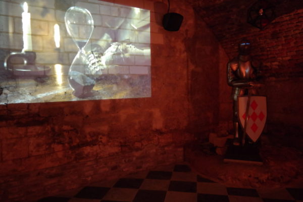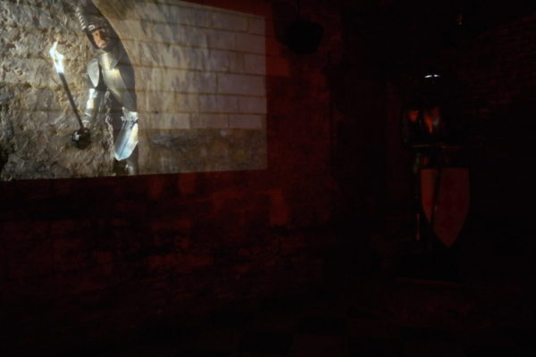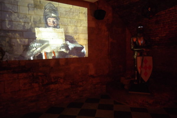Vervolgens komen de bezoekers tijdens de verkenningstocht door het kasteel ‘scherven uit het verleden’ tegen. Iedere scherf legt een vraag voor over wat er zich zoal heeft afgespeeld in en rond het kasteel. De ene keer met een tekst, de andere keer met een video en bij weer een andere scherf kunnen de bezoekers luisteren.
