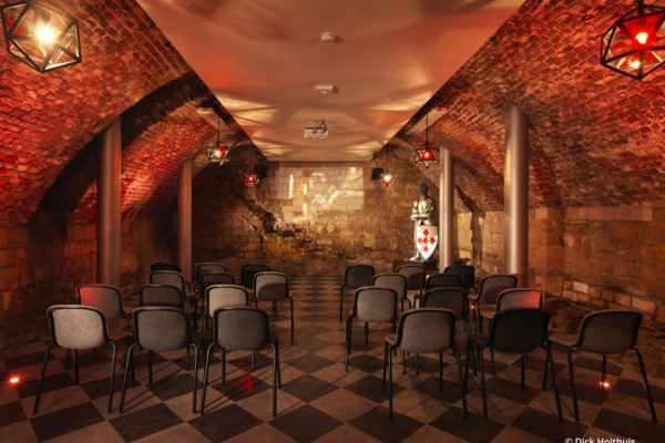 Het bezoek aan het kasteel begint in de gewelfde kelder van het kasteel. Hier wordt de duizend jaar oude geschiedenis door Graaf van Kessel weer tot leven gebracht. In een vijf minuten durende multimediapresentatie, die geprojecteerd wordt op de mergelstenen muur, vertelt hij het verhaal van 1000 jaar in en rond het Kasteel De Keverberg. Graaf van Kessel staat zijn bezoekers ‘persoonlijk’ te woord (voice-over) in zijn harnas en in het vizier zien de bezoekers zijn bewegende ogen die alles in de gaten houden. Deze gewelfde kelder, ook wel Casello genoemd, is trouwens multifunctioneel. Zo kan deze ruimte ook ingericht worden voor feesten of vergaderingen.