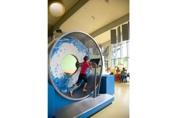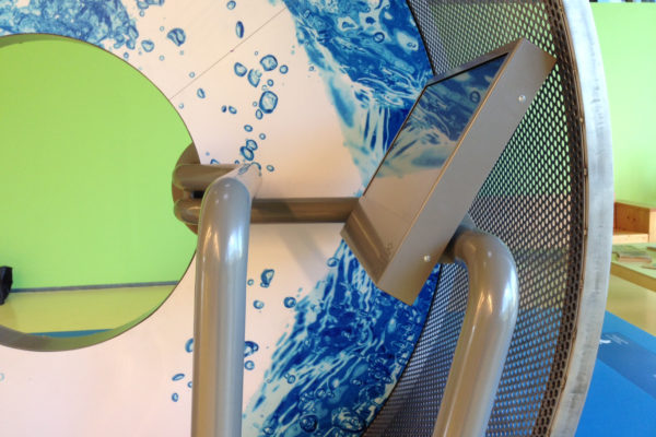 Op een interactieve manier kunnen kinderen – en hun (groot)ouders ontdekken en leren. Bezoekers kunnen, door in het rad te lopen een animatie activeren over het zuiveringsproces van rioolwater. Op het toilet, naast het rad, krijgen bezoekers een informatief filmpje te zien over watergebruik.