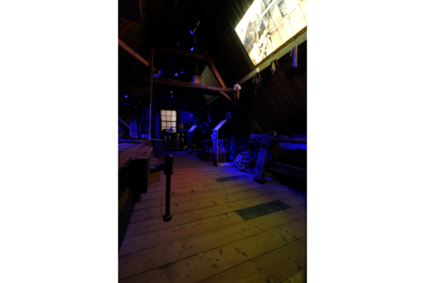 Met projecties en een getimede licht- en geluidshow op de zolder van het museum wordt ieder uniek stuk gereedschap in de schijnwerpers gezet. Langzaam komt de verdwenen wereld van de timmermannen weer tot leven: geluiden als zagen en timmeren zijn te horen en een voice-over neemt de bezoeker mee in het verhaal van de 350 jaar oude Timmerwerf.
