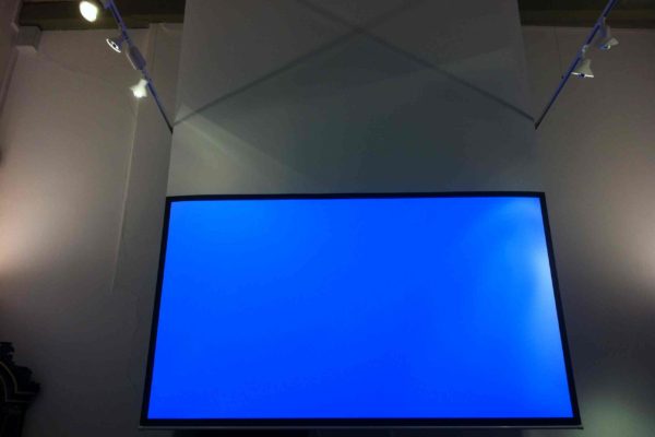 Een 5000 Lumen full HD projector zorgt voor de projectie op een maatscherm (bijna 3 meter voorloop en 125 kg zwaar!) dat op een centimeter nauwkeurig tussen de aanwezige belichtingslijnen loopt. Om de bekabeling te minimaliseren is gekozen voor een HDbaseT overdracht van de HDMI en VGA signalen via een enkele cat5 kabel.