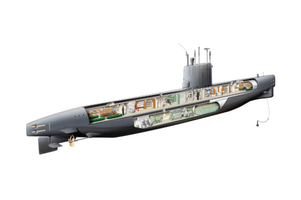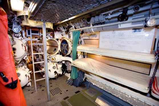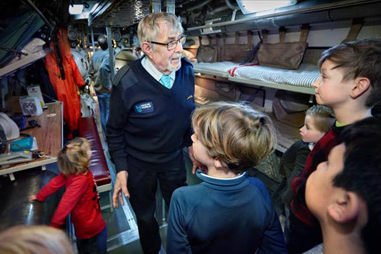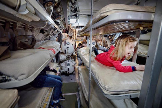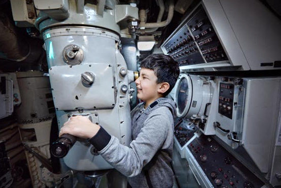 Ontdek het leven en de techniek aan boord. Loop door de smalle gangen van de tachtig meter lange onderzeeër. Overal waar je loopt hoor je de geluiden uit het verleden. Je ziet dicht op elkaar geplaatste stapelbedden en hoort het gesnurk van de bemanningsleden. In de commandokamer hoor je muziek uit die tijd. In de kombuis hoor je de kok de maaltijden maken en ervaar hoe het klinkt als er een torpedo wordt geladen……