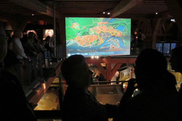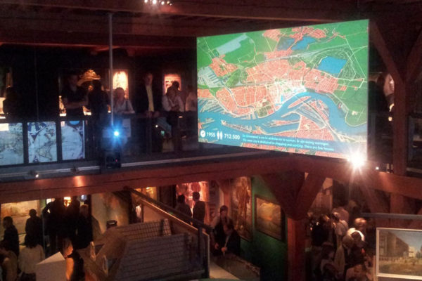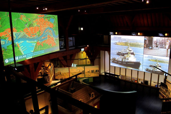 Rotterdam is nieuw en oud tegelijk. De modernste stad van ons land is al zo’n 1000 jaar en dat wordt interactief gevierd in het fraaie Schielandshuis. Op een groot projectiescherm verbeeldt een digitale stadskaart op allerlei manieren de groeispurten van de stad. Even verderop kun je een tijdreis maken over het water van de Rotte en de Maas. Een speciaal voor de expositie gemaakte film voert de kijker in een stroomversnelling van beelden mee door 1000 jaar Rotterdam.